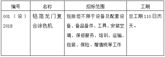 江蘇大亞新型包裝材料有限公司鋁箔龍門復(fù)合涂色機(jī)招標(biāo)公告