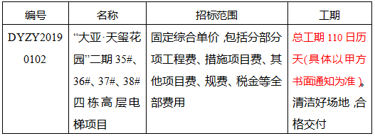 “大亞·天璽花園”二期35#、36#、37#、38#四棟高層電梯項目招標公告