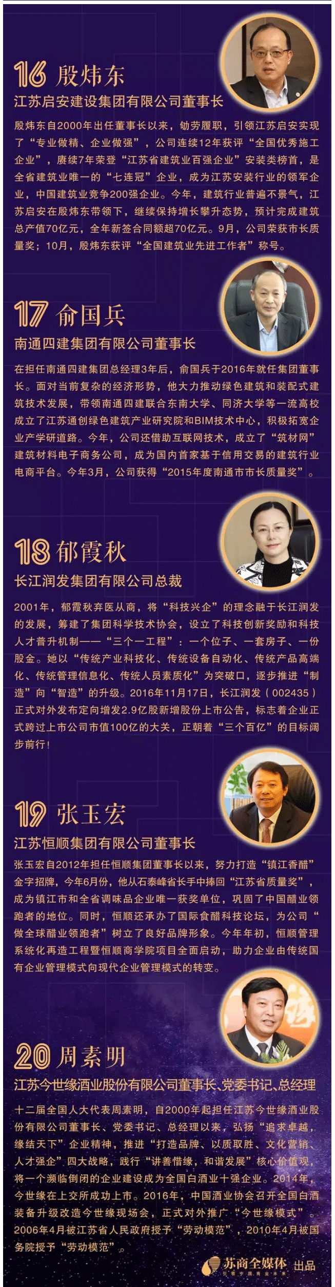 “2017第11屆蘇商領袖年會”即將在南京盛大舉行。屆時,“2016蘇商十大年度經濟人物”將重磅登場,從社會關注、業(yè)界影響、商業(yè)變革、社會責任感等多角度彰顯江蘇企業(yè)家的獨特魅力。