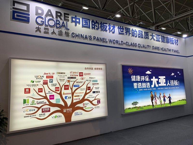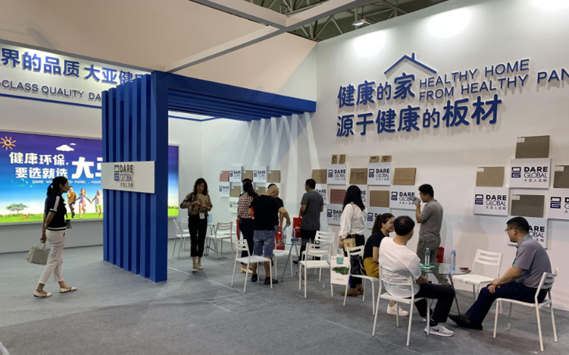大亞人造板現(xiàn)場(chǎng)展出了無醛刨花板、無醛地板基材、無醛鏤銑板、無醛家具纖維板、高防潮刨花板、防潮地板基材、防潮門板、防霉纖維板、防霉刨花板、低吸漲纖維板、低吸漲刨花板、阻燃纖維板、電子線路墊板、鞋跟板等代表人造板行業(yè)先進(jìn)技術(shù)水平的產(chǎn)品,吸引了眾多客戶前來觀摩洽談。
