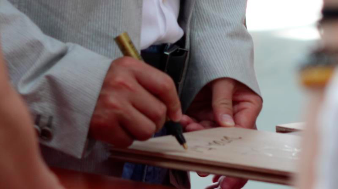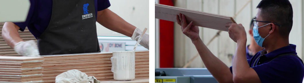 之后,董事長和嘉賓們一起見證新實木實驗工廠首片樣板下線,并在首片樣板上簽名,對新實驗工廠寄予厚望。