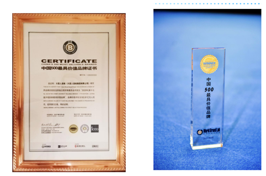8月5日,由世界品牌實驗室(World Brand Lab)主辦的(第十七屆)“世界品牌大會”在北京舉行,會上發(fā)布了2020年《中國500最具價值品牌》分析報告。在這份基于財務數(shù)據(jù)、品牌強度和消費者行為分析的年度報告中,圣象以572.59億元人民幣品牌價值再次入選,榮膺第102位,繼續(xù)領跑中國家居行業(yè);大亞人造板以182.81億元品牌價值蟬聯(lián)中國人造板行業(yè)榜首,品牌排名322位,價值增幅15.2%。